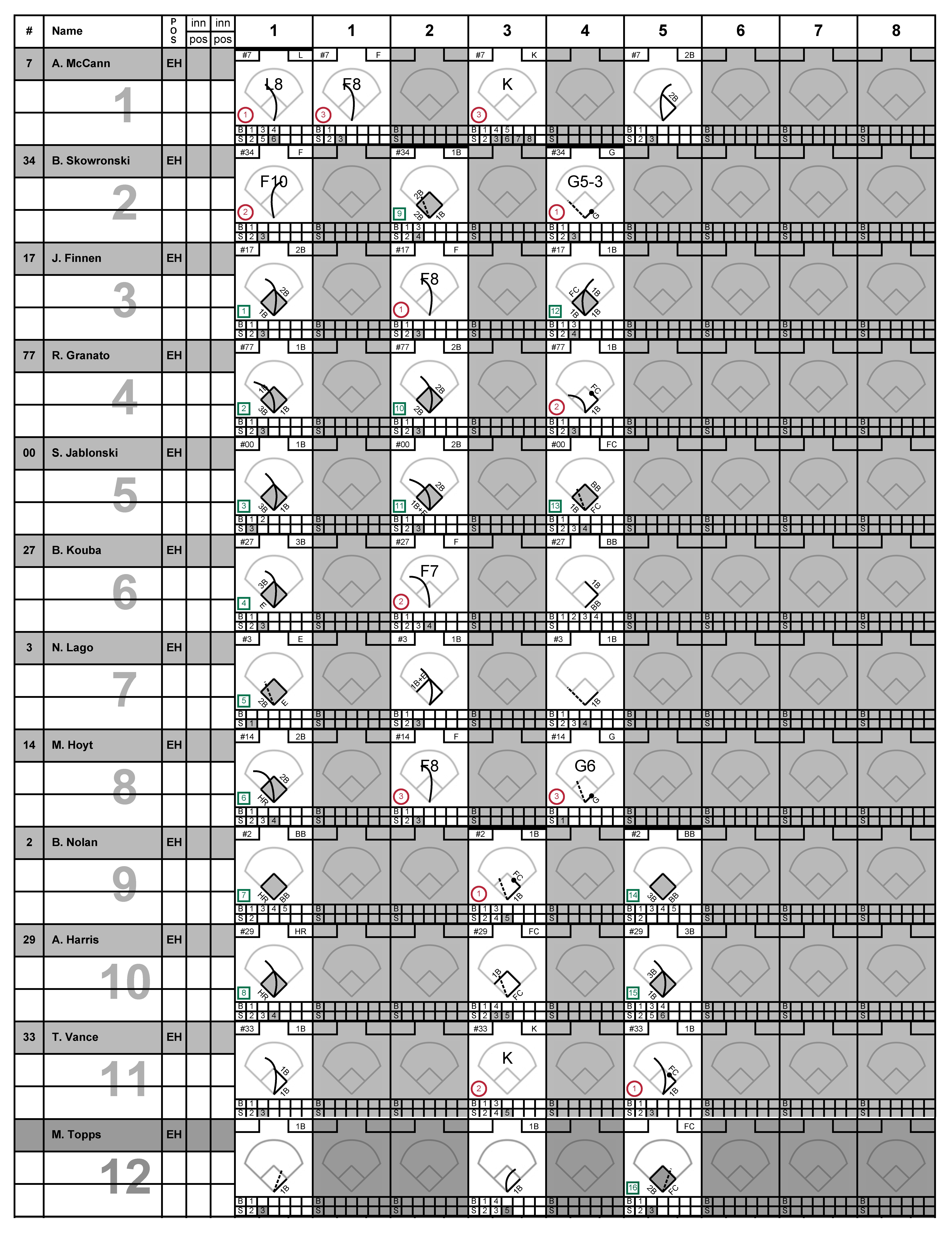 | 2B | Bryan Kouba | 2 | 1 | 1 | 2 | 0 | 1 | 0 | 0 | 1 | 0 |